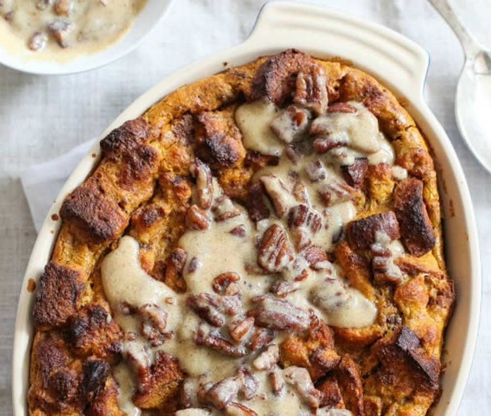 Pumpkin Bread Pudding with Bourbon Sauce