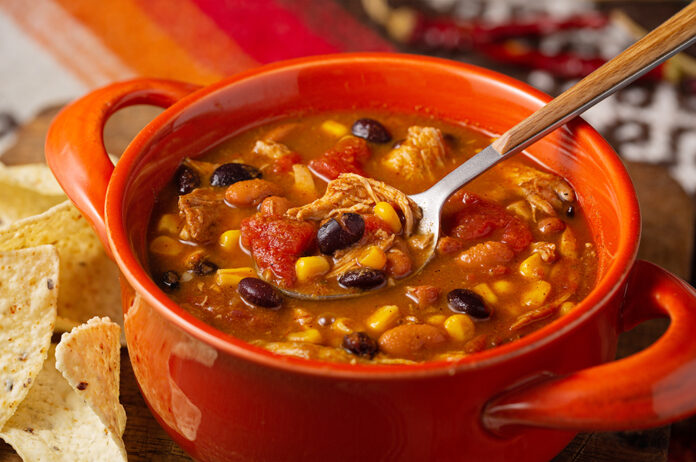 - Combine ground beef or chicken, onion and jalapeño in a 4-quart soup pot. Cook over medium-high heat until beef is cooked through and no longer pink, about 5 minutes.