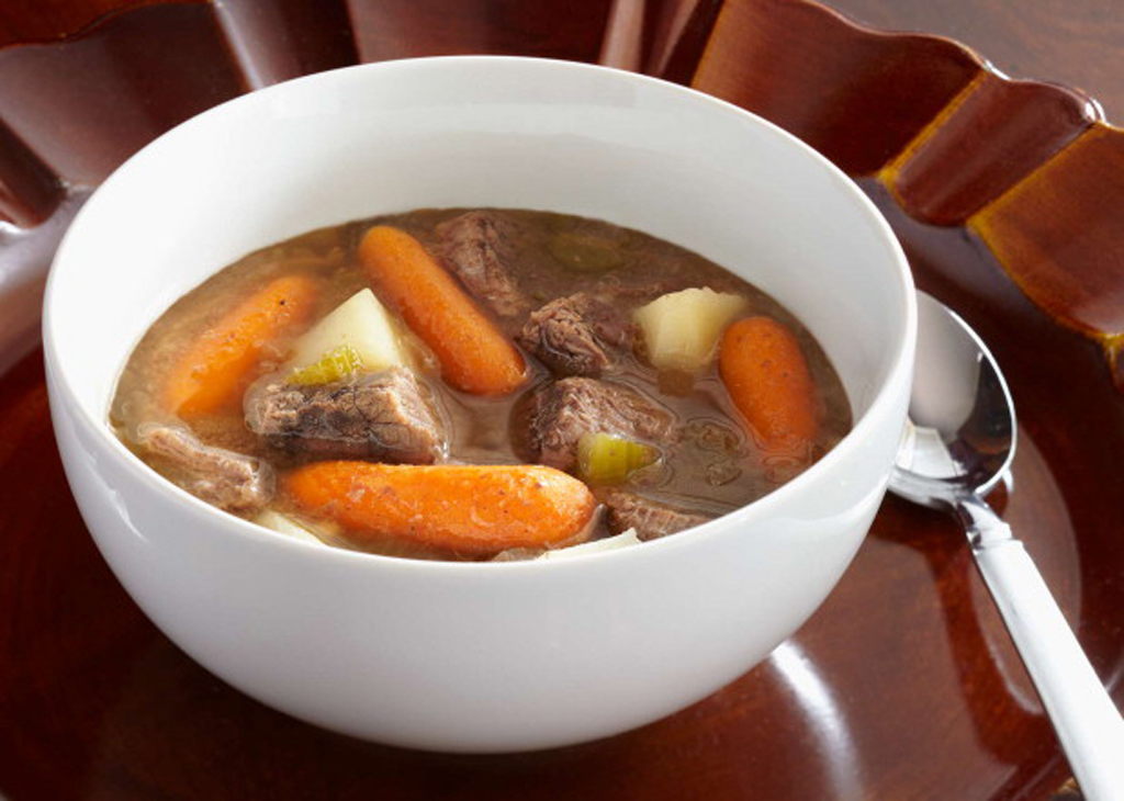 - Start by adding beef, onion, broth, vinegar, celery, garlic, carrots and potatoes to slow cooker.