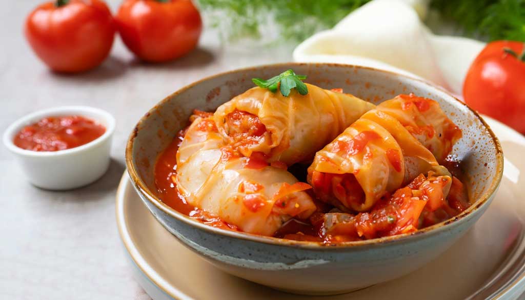 - Mix the meats with onion, garlic and rice, adding salt and pepper to taste. Stuff the leaves with meat, roll and trim as needed (half leaves may work). Seal and set side.