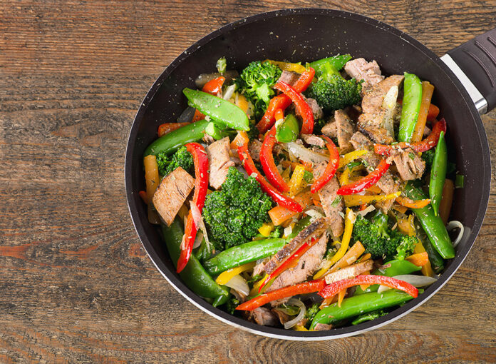 2. Stir-fry the onion, carrot, green pepper, mushrooms and broccoli until crisp-tender, about 5 minutes.