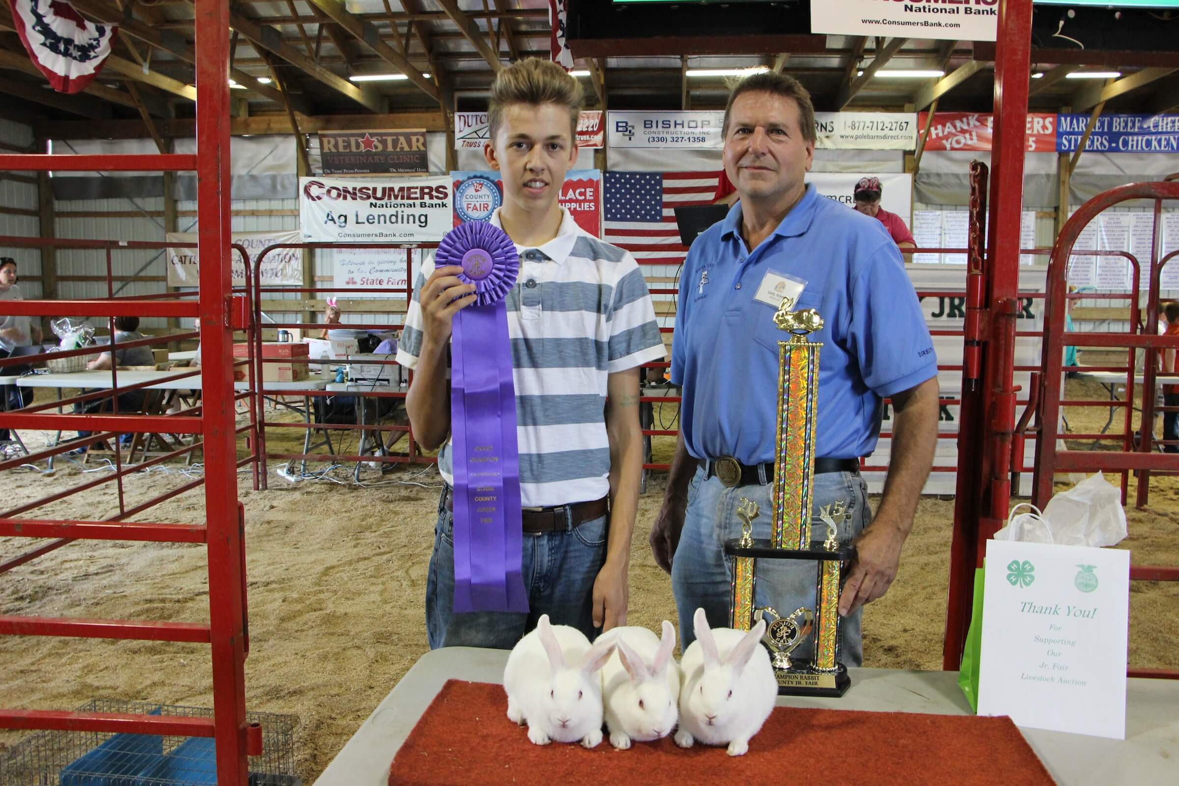 Christian Pernell sold his grand champion rabbit meat pen for $400 to Earl Rohn of Rohn Ranch Trailer Sales.