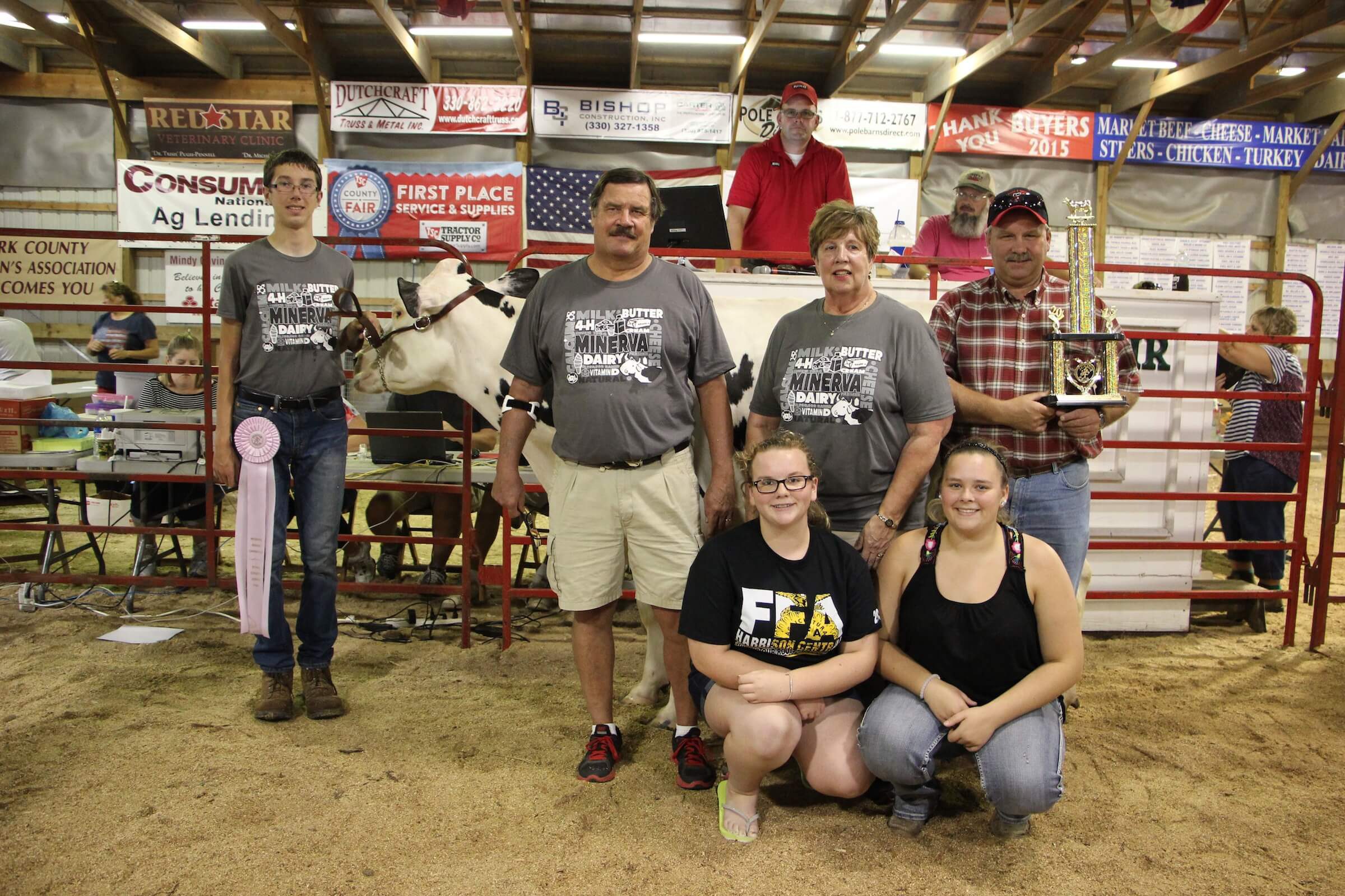 Daniel Wolfe sold his reserve champion cheese product for $2,000 to D&J Sales and Service, represented by Emi Jones (front left), Jalyn Jones, Phil Mueller (back left), Diane Jones and Don Jones.
