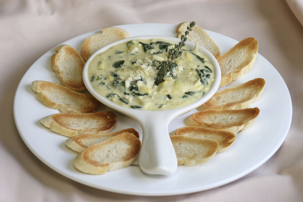 Ingredients: 1 (14-ounce) can artichoke hearts, drained and chopped 1 (10-ounce) package frozen chopped spinach, thawed and drained 1 (8-ounce) container plain Greek yogurt 1 cup shredded Mozzarella cheese 1/4 cup chopped green onion 1 garlic clove, minced 2 tablespoons chopped red pepper Directions: Combine all ingredients except red pepper and mix well. Pour mixture