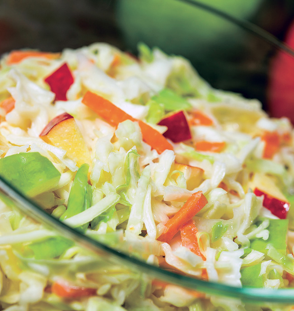 Apple Coleslaw Ingredients: 2 apples (red and green), cored and chopped ½ head of green cabbage, shredded (3 cups) 1 cup shredded carrots 1 Tbsp. honey ¾ cup low fat vanilla yogurt Directions: Mix yogurt and honey in a large bowl. Add other ingredients and mix together lightly. OPTIONAL: Add raisins or grapes, if you