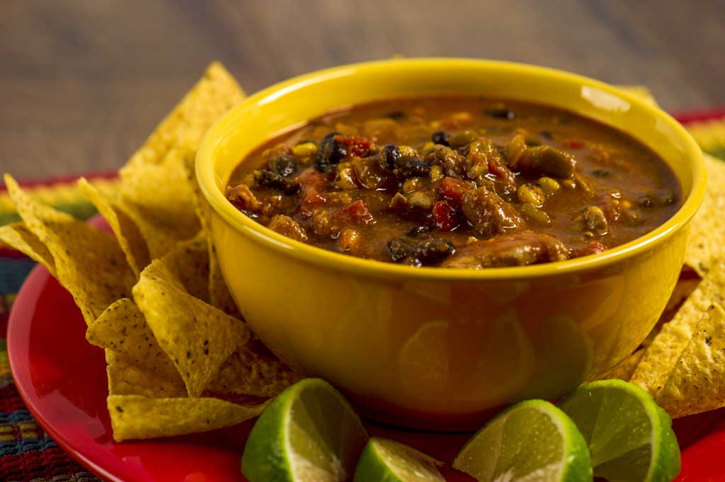 Slow Cooker Chili Yield: Makes 2-1/2 quarts or 6 servings. Ingredients: 1 cup dried pinto beans, sorted and rinsed 1 cup dried red kidney beans, sorted and rinsed water 1-1/2 pound beef sirloin or pork loin,trimmed and cut into 3/4-inch cubes (3-1/2 cups) 1 pound yellow or white onions, coarsely chopped 1 red bell pepper,