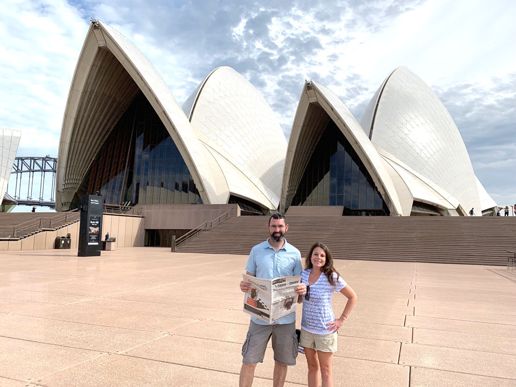 James and Billie Lenke, of Hiram, Ohio, took us with them on their honeymoon. The first stop was the Sydney Opera House in Australia. The Lenkes also took us hiking in Flinders Ranges in the south Australia outback. James is even wearing one of our shirts! Visit www.farmanddairy.com/shop to order yours! (Submitted photos)