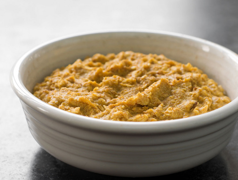 Baked Pumpkin Oatmeal Ingredients: 2 cups old-fashioned rolled oats, uncooked (not quick cooking) 1/4 cup low-calorie brown sugar sweetener blend (or 1/8 cup brown sugar) 1 tsp. ground cinnamon 1/8 tsp. ground nutmeg 1 tsp. baking powder 1 cup skim milk 1 tsp. vanilla extract 1 cup pureed pumpkin 1 Tbsp. canola oil 1 egg,