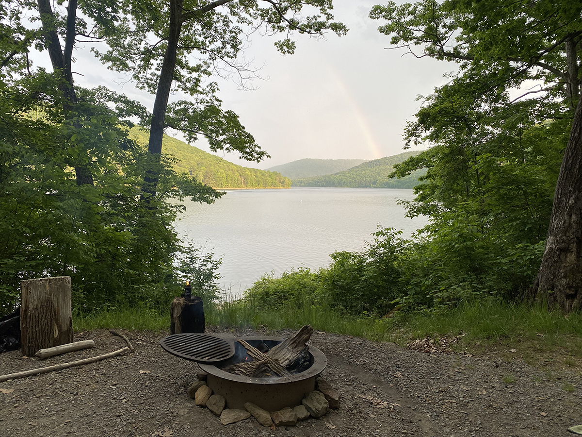 Camping at Dewdrop Campground, site 74, in Allegheny National Forest means trading convenience and comfort for a breathtaking view in the wilderness.