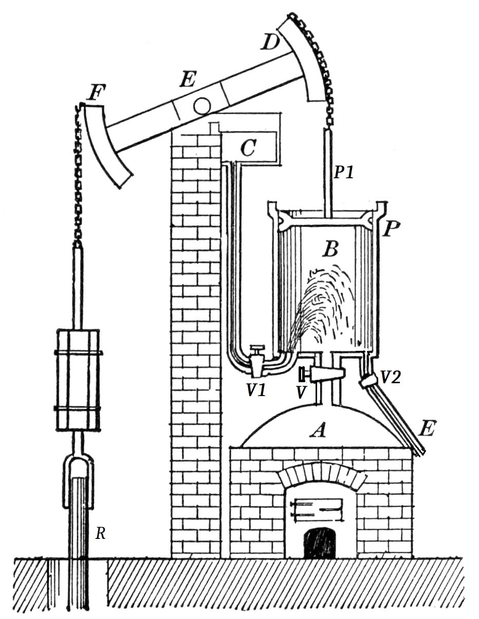 Learn more about the Newcomen engines, called “Fire Engines,” which were used to pump water from British mines.