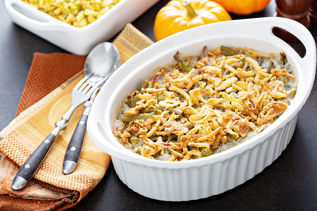 Green Bean Casserole Ingredients: To taste kosher salt 3 lbs. green beans, trimmed 1 1/2 sticks unsalted butter, divided 2 yellow onions, thinly sliced 1 lb. cremini mushrooms, sliced To taste freshly ground black pepper 4 cloves garlic, finely chopped 1/2 cup all-purpose flour 6 cups whole milk 1 1/2 cups fried onions Directions: Preheat