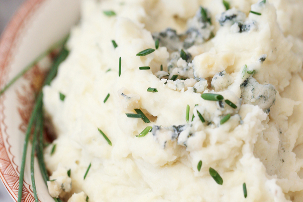 Blue Cheese Mashed Potatoes Ingredients: 2½ pounds russet potatoes 1 tsp. kosher salt, plus more for seasoning 3/4 cup buttermilk 6 Tbsp. butter 4 ounces blue cheese, crumbled ¼ cup chives Freshly ground black pepper Directions: Peel the potatoes and rinse under cold water. Cut each potato into quarters and place in a 4 quart