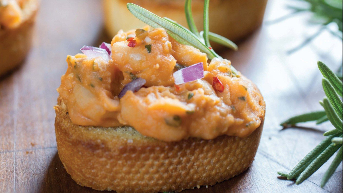 Makes 12 servings – courtesy of Ohio Farm Bureau Federation Ingredients: 1 tablespoon extra virgin olive oil 1 tablespoon butter 1 clove garlic, minced 1 tablespoon each chopped fresh rosemary, thyme and sage Pinch of hot red pepper flakes 1 15-ounce can cannellini beans, drained, reserve liquid 1 tablespoon tomato paste Salt, to taste 2