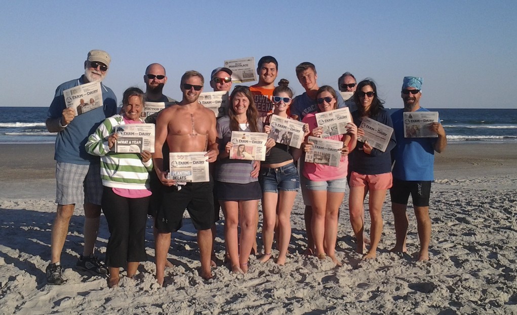 After 30 years with Land O’Lakes, John Rhoades decided to retire and he decided to celebrate with a family vacation to Topsail Beach in North Carolina. Of course, the family didn’t leave their Farm and Dairy behind. From the left is John Rhoades and his wife, Sandie. Beside Sandie is their son, Andrew, daughter Wendy