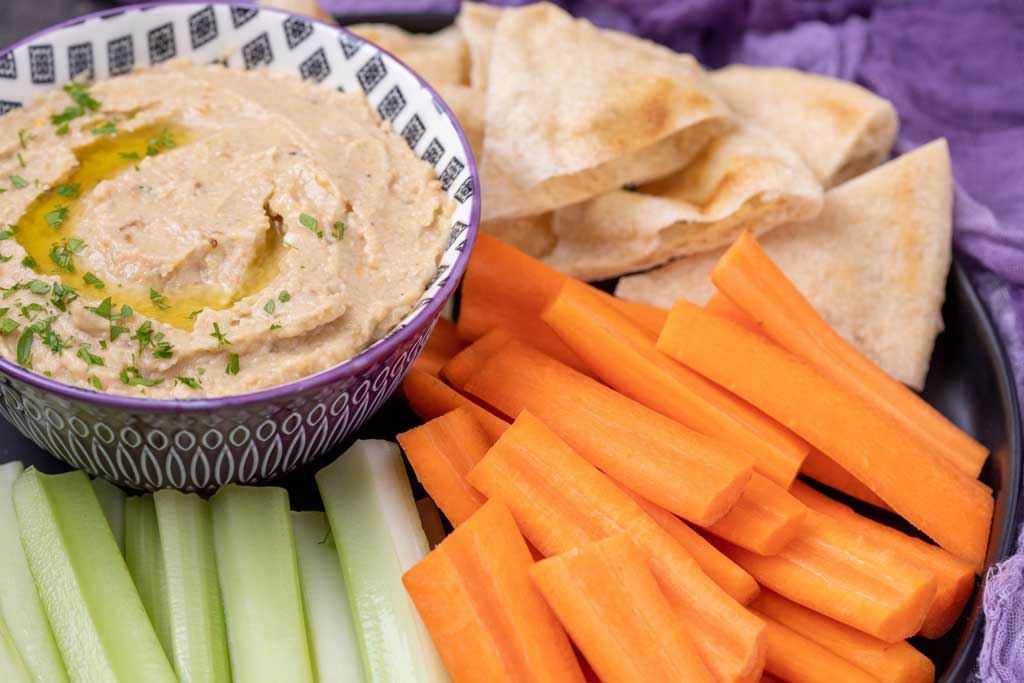 Baba Ghanoush Ingredients: 2 large eggplants (about 2 pounds) ½ cup tahini ½ cup fresh parsley, chopped 6 Tbsp. lemon juice 2 garlic cloves, crushed into a paste 1 tsp. salt Pinch cayenne pepper Directions: Place eggplant on baking sheet, prick and bake in a preheated oven at 450° F for 25 minutes or until