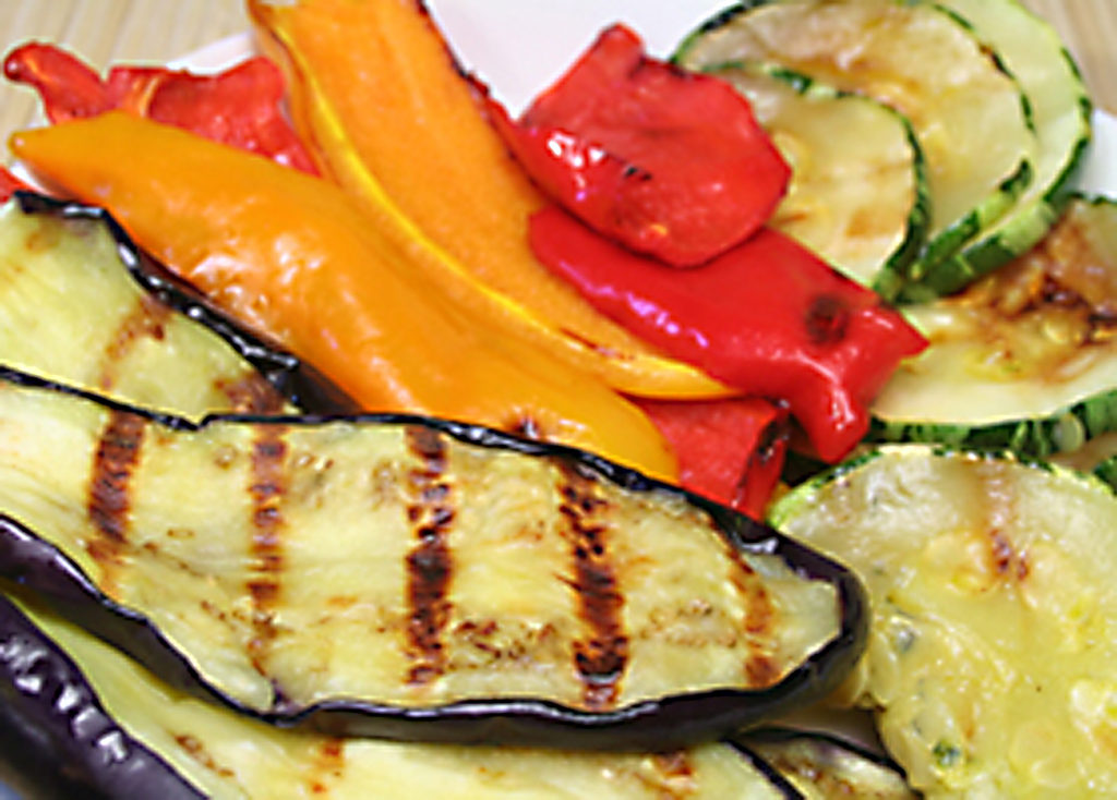 Ingredients 1 Tbsp Olive Oil 2 Tbsp Balsamic Vinegar ¼ tsp ground black pepper 1 medium zucchini, sliced lengthwise into 4 slices 1 medium yellow squash, sliced lengthwise into 4 slices 1 orange bell pepper, sliced into 4 slices 1 small eggplant, sliced lengthwise into 4 slices ¼ cup goat cheese, softened 1 cup non fat,
