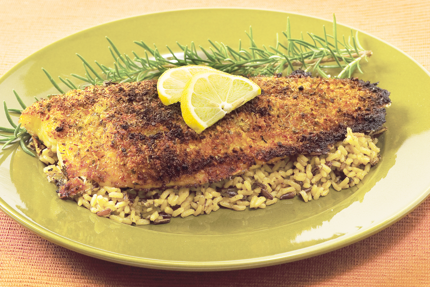 Oven Baked Catfish Ingredients: 1-1½ pounds catfish fillets ½ cup low fat Greek yogurt 1 Tbsp. fresh dill, finely chopped 1 Tbsp. fresh parsley, finely chopped 1 Tbsp. lemon juice 1 cup panko bread crumbs 2 Tbsp. finely grated Parmesan cheese 2 Tbsp. sesame seeds ¼-½ teaspoon Cajun seasoning salt and pepper lemon wedges Directions: