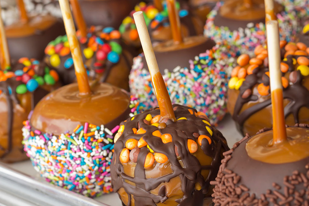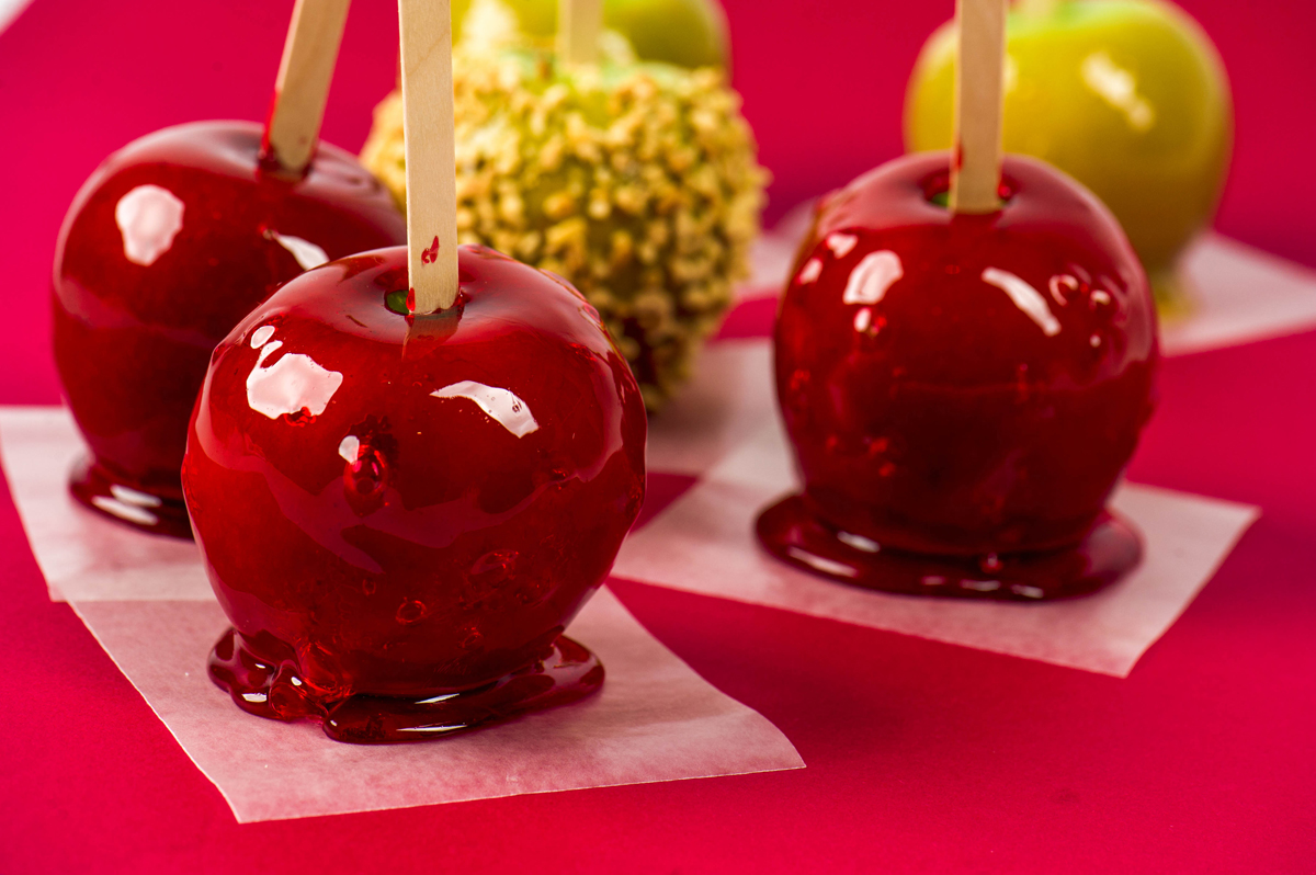 Candy Apples Ingredients: 9 red apples 9 wooden skewers 3 cups white sugar 1/4 teaspoon cream of tartar 1/4 teaspoon salt 1 cup water red food coloring Directions: Wash and dry apples. Make sure your apples are completely dry and chilled in fridge. Remove stems and insert skewers or wooden pop sticks into the stem end