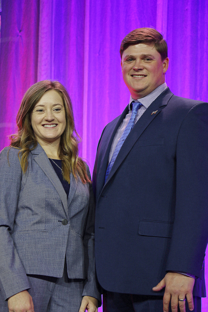 Kyle and Ashton Walls, of Knox County, earned the 2019 Excellence in Agriculture Award. The Walls, first-generation farmers, raise Mexican Corriente cattle, horses and layer hens. The cattle are used in rodeo events and for beef finishing. Kyle is an agricultural and commercial lender with the Park National Bank. Ashton works for CNH Industrial, as an inventory analyst.