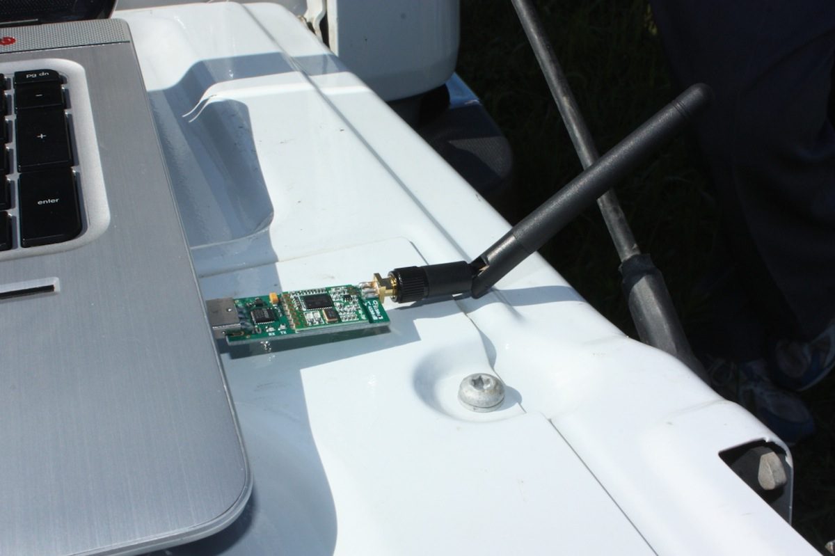 The Garmin video is transmitted wirelessly back to Hillyer’s laptop, which is equipped with a special video receiver. The video is also tagged with the GPS coordinates, so each segment of the footage can be traced to a specific location in the field, as well as latitude and longitude, for accuracy.