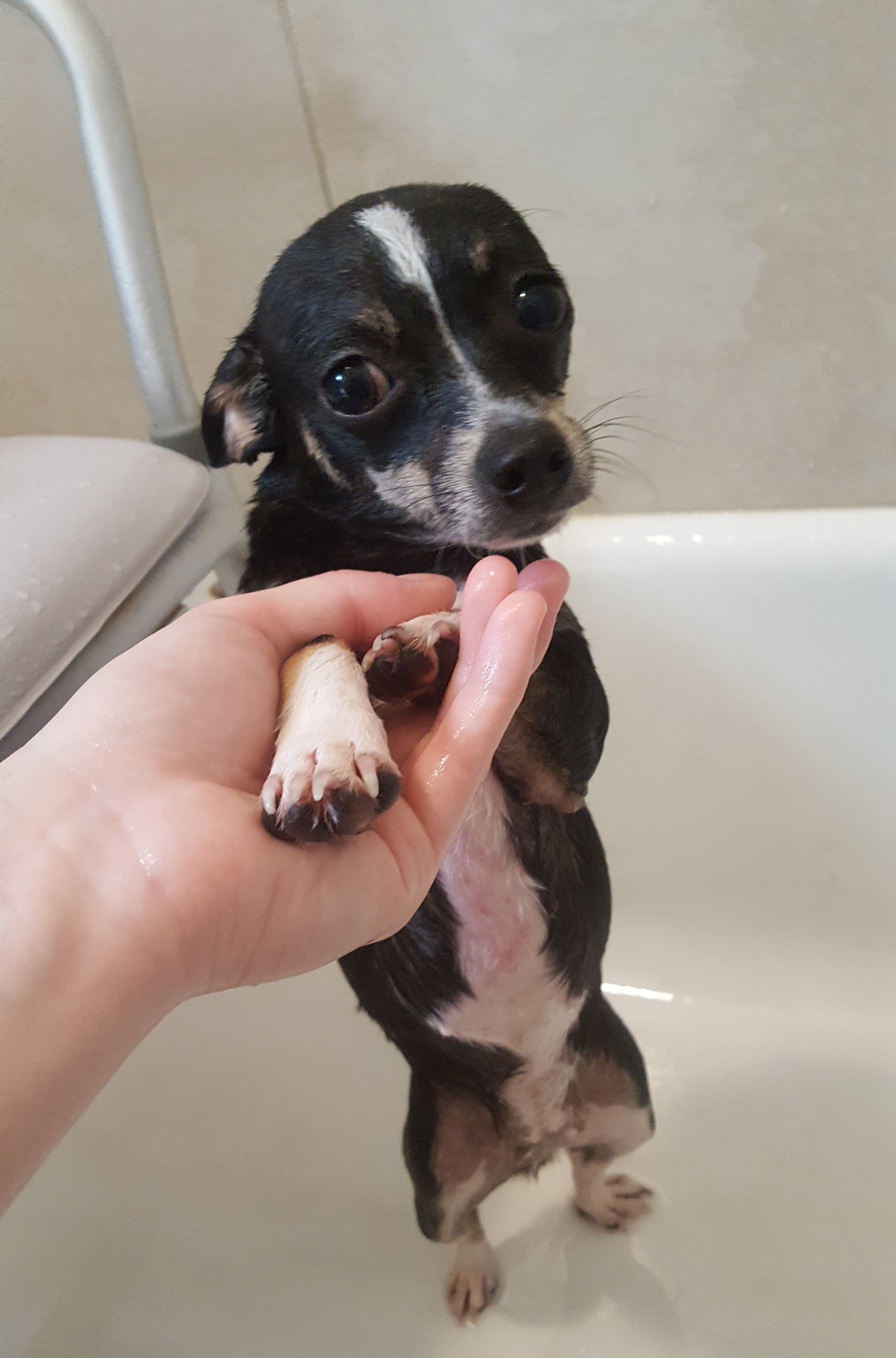 Whatever the case, both pups have been exposed. First, Gus exhibited the rash. It started out looking more like scratches on his chest. As the younger of the two, I just assumed he had been bested on a few wrestling matches. However, when it bubbled up the following day, I immediately recognized it. It wasn’t too irritated or widely spread, so I just bathed him and waited for it to dry up. More than anything I was shocked he got a rash at all because we all know dogs don’t get poison ivy.