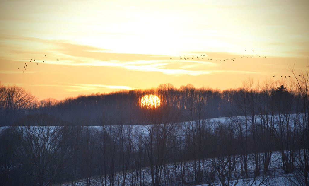 The winter sun sets over the farm. (Courtsey of Blue Heron Farms)