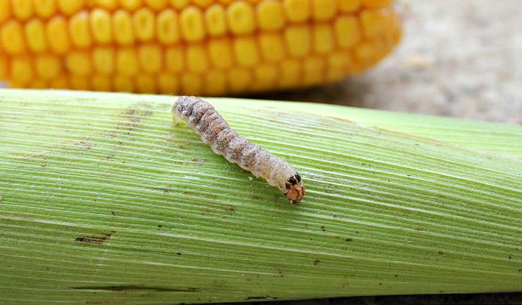 Experts are worried the pests that preyed on last year’s crops — including slugs, stink bugs and bean leaf beetles on soybeans, cereal leaf beetles on small grains, and Asiatic garden beetles and western bean cutworms (pictured) on corn — will be particularly bad in Ohio this year because of the relatively mild winter. (Photo courtesy Adam Sisson, Iowa State University, Bugwood.org)