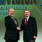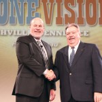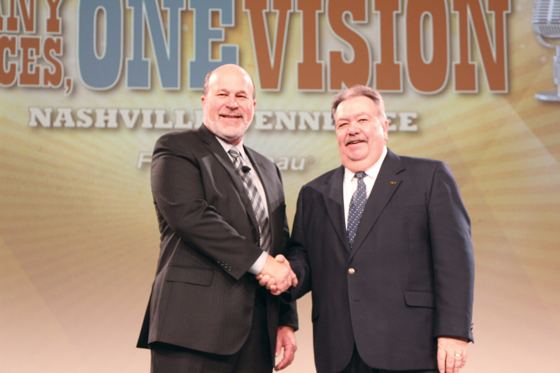 Ohio Farm Bureau Federation President Steve Hirsch (r) receives congratulations from American Farm Bureau President Bob Stallman on Ohio’s recognition as a top state organization in the nation.