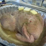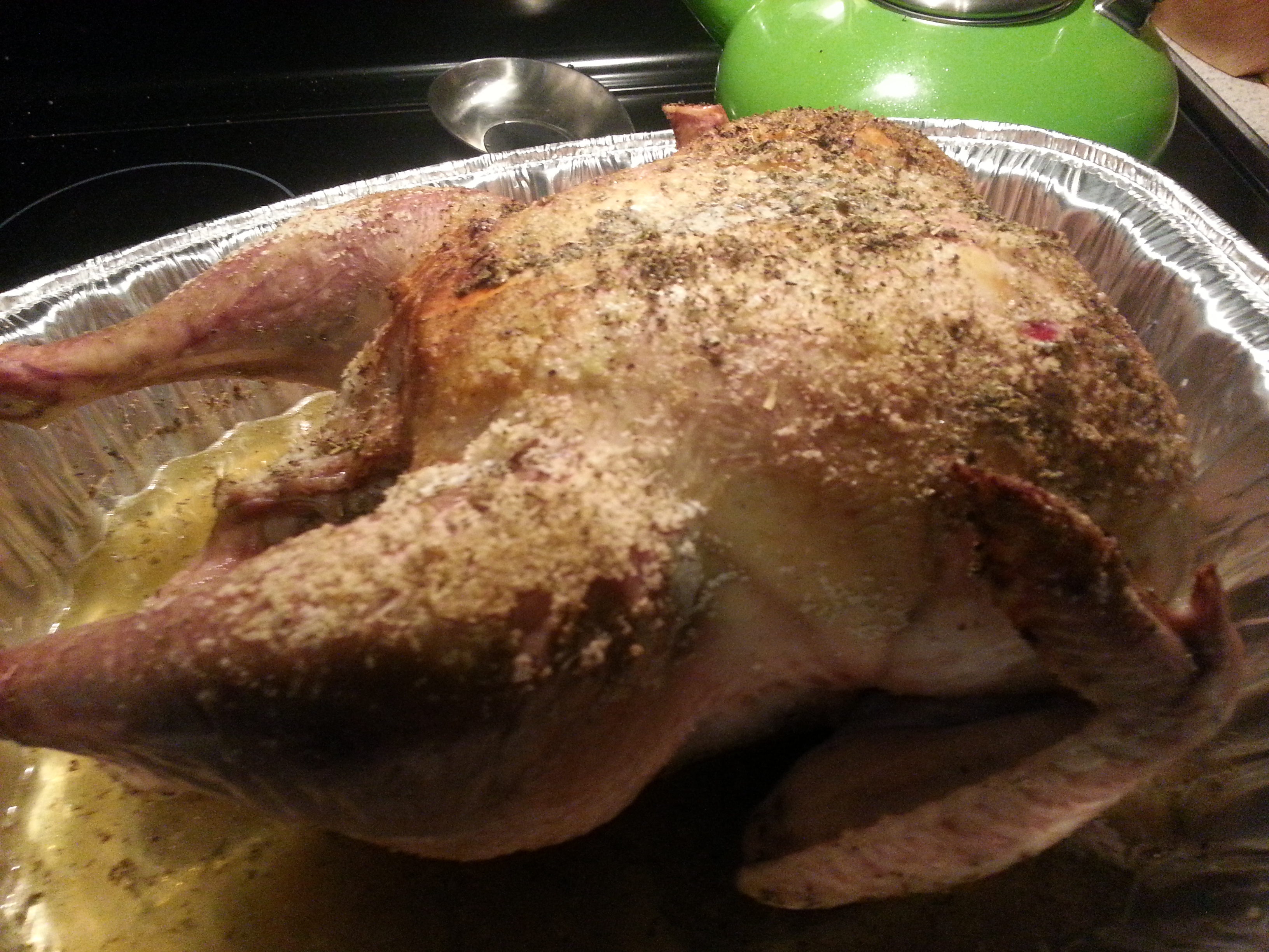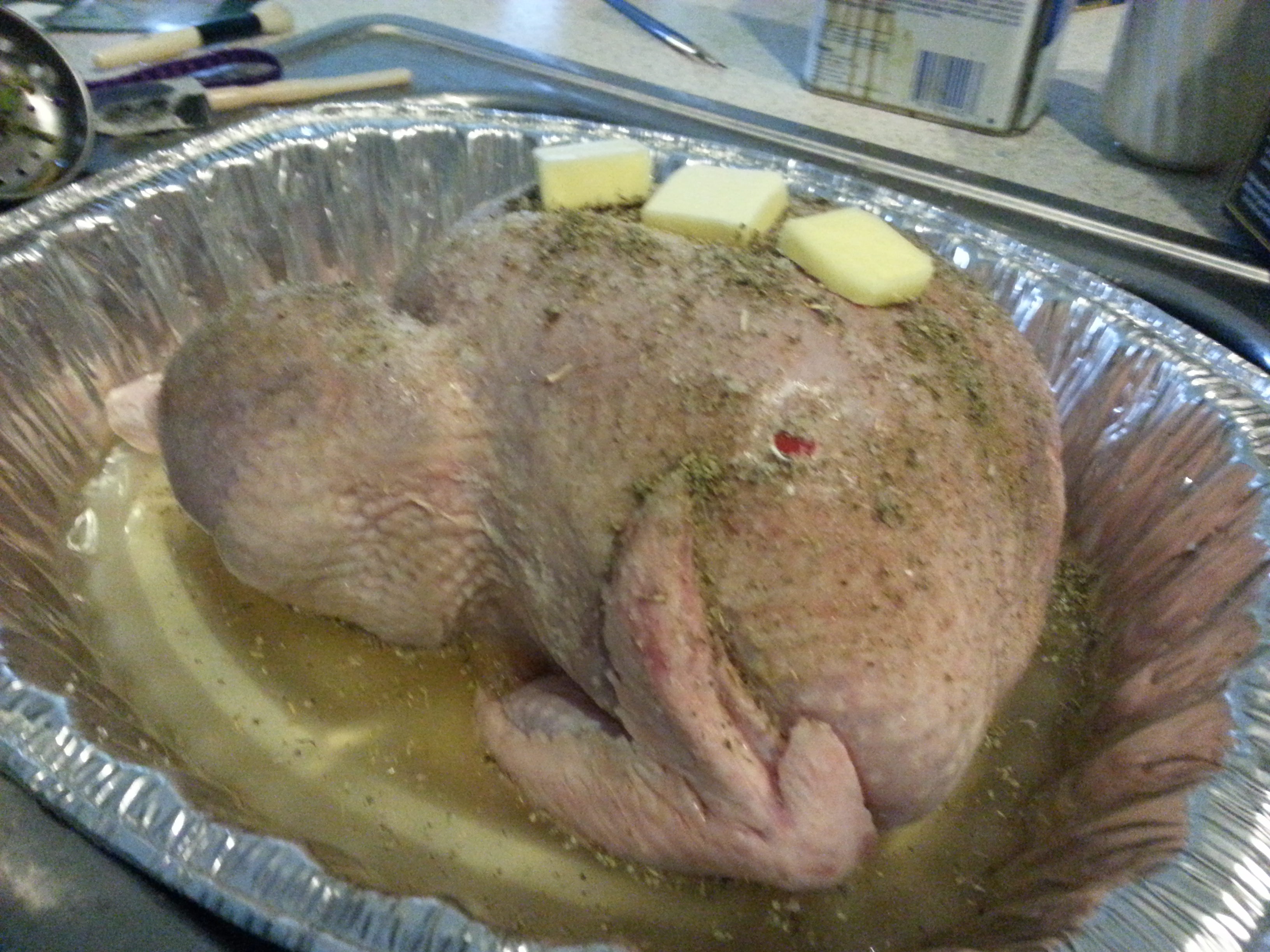 We loosely followed a recipe I found at Cooks.com. Cooks.com recommends buttering after applying the spices, we disagree. Butter before the spices. Buttering afterward only brushes away all of that tasty rosemary and thyme.