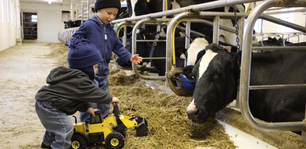 While Brandon pulls a feed cart down the alley, his brother Randall gets right to work, pushing up the silage with a plastic toy loader tractor. “When I’m feeding the cows, he has a mixer he wants to mix his feed with,” said Nolt, who added that his sons also like to pretend they are combining.