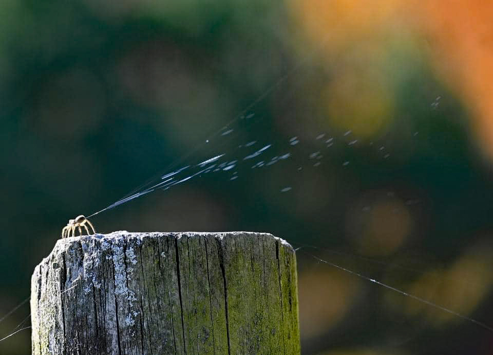 Autumn spider dispersal is an event I look forward to every year. On a warm fall day, when the breeze is slight, I begin to catch the glint of gossamer floating above my pastures and I know that the ballooning event has begun. For hours on end, I walk up and down my driveway, inspecting each fencepost. On the top of each are tiptoeing spiders of many different species, their abdomens pointing skyward. I stand and watch as the gossamer appears and extends upward. If I am patient enough, the spider will suddenly launch skyward and disappear into the sun.