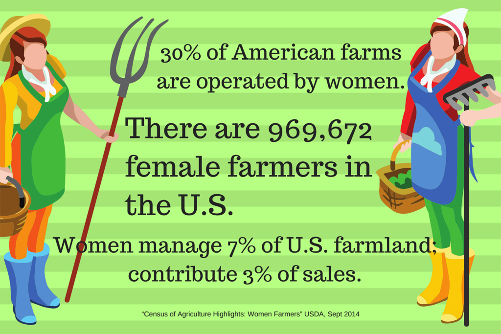 According to the most recent USDA Agricultural Census, there are 969,672 female farmers in the United States. Thirty percent of American farms are operated by women (2014).