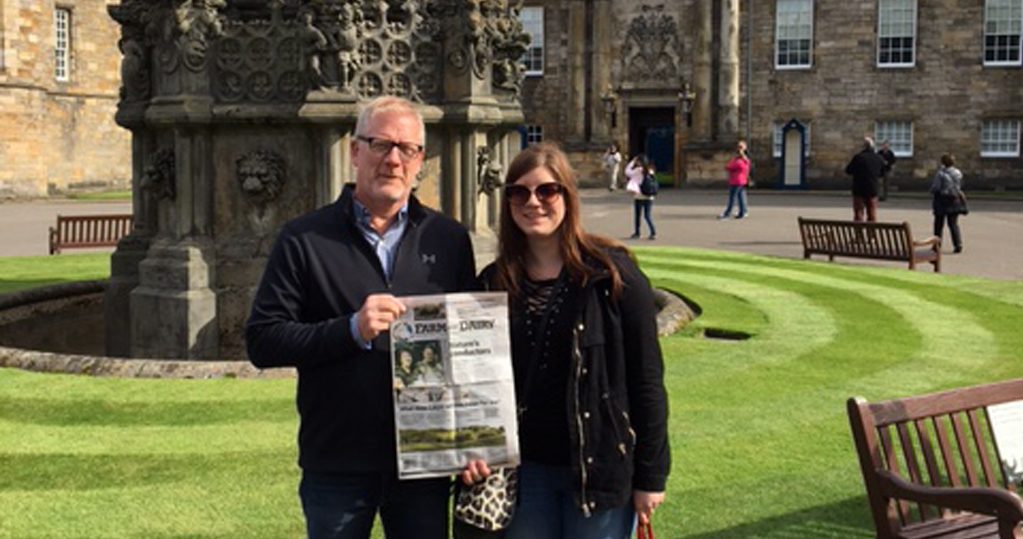 Dan Metzger and his daughter, Angie Metzger brought the Farm and Dairy as they visited the Palace of Holyroodhouse in Edinburgh, Scotland. Mary, Queen of Scots lived in this palace in the 1560s. Dan and his wife, Brenda, of North Canton, Ohio, went to visit Angie, as she is studies veterinary medicine at the University of London Royal Veterinary College. (Submitted photo)