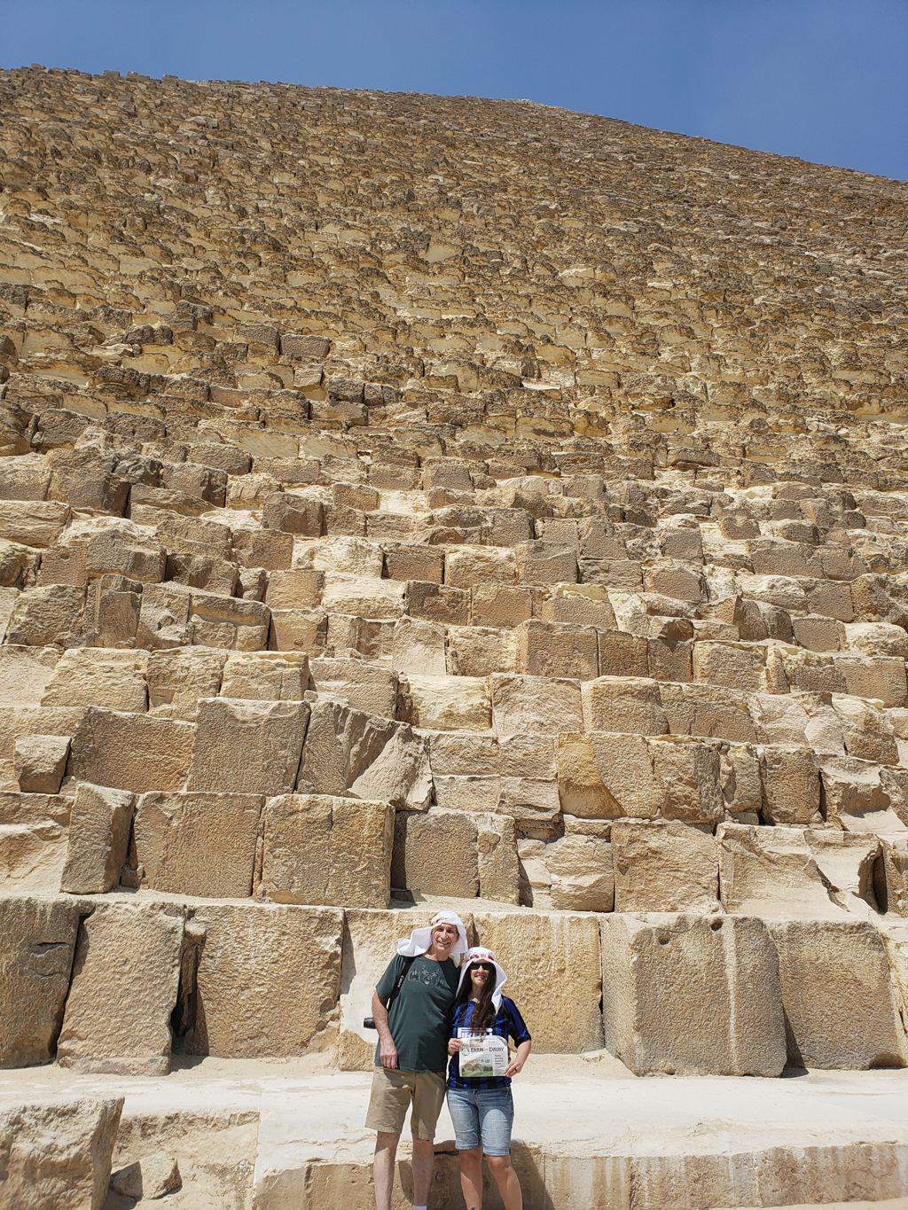 You get a real sense of just how large the pyramids are when you see this photo of Dick and Amy Pellegrini, of St. Clairsville, Ohio. Farm and Dairy traveled with them to the pyramids at Giza in Egypt, constructed some 4,500 years ago. It’s estimated the largest towers 481 feet above the plateau. Each of the 2.3 million stone blocks weighs between 2.5 to 15 tons.