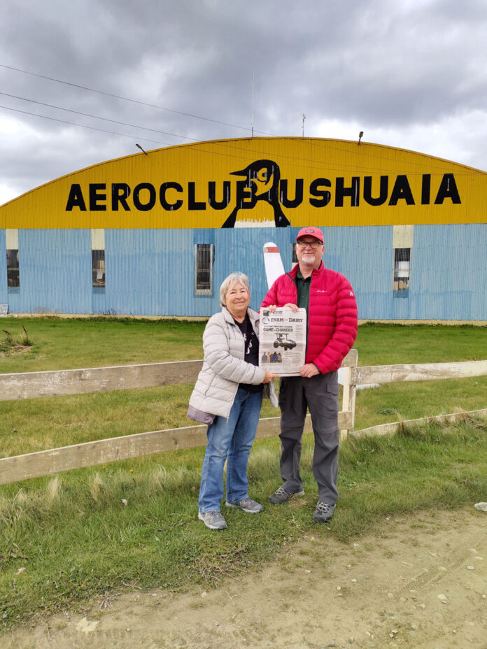 Chris and Rose Gobeli brought Farm and Dairy along when they visited Ushuaia, Argentina/Patagonia in South America. (Submitted photo)