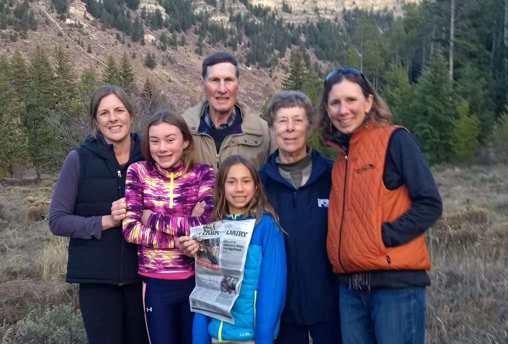 Jerry and Pearle Burlingame definitely shared Farm and Dairy while visiting family in western Colorado. Pictured (left to right): Carol Rodriguez, daughter; Cora and Claire Jackson, granddaughters; Pearle; Cheryl Jackson, daughter; and Jerry in the back.