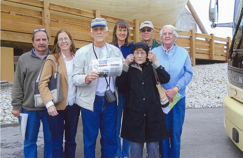 The Farm and Dairy traveled with Wayne and Shirley Cooper of Fombell, Pennsylvania, to the Ark Encounter, Williamstown, Kentucky. Pictured are: Day Dream bus tour directors Bill and Lana Boyer; Wayne and Shirley Cooper, and Marjie, Ed and Sue Tobias.
