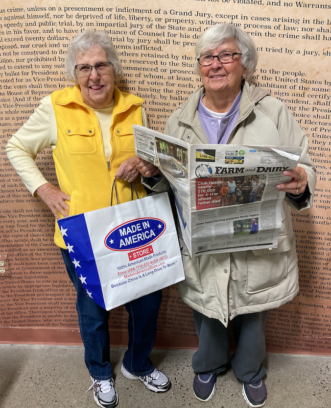 Margaret Lowe (right) and Virginia Carroll brought Farm and Dairy along when they visited the Made in America Store in Elma, New York. (Submitted photo)