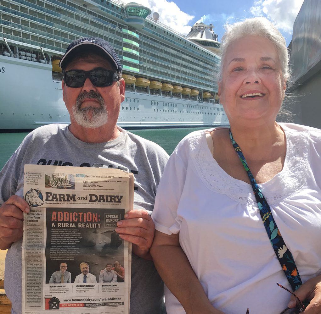 Jim and Brenda Franks, of Wooster, Ohio, celebrated their 34th wedding anniversary with a cruise in the eastern Caribbean in December. But their trip wouldn’t have been complete without us. They stopped to catch up on the lastest Farm and Dairy news while in San Juan, Puerto Rico.