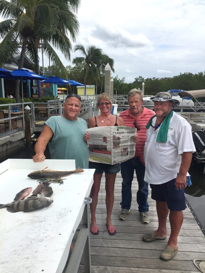 (Left to right): Randy Duncan and Michelle and Howard Genet, of Wooster, Ohio, visited Fort Myers, Florida, Sept. 30. Capt. Mike and Farm and Dairy were also along for the ride.