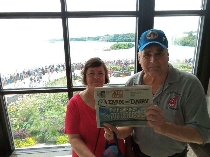 Jeff and Jackie Sayers took a trip to Niagara Falls in Canada and made sure to take Farm and Dairy with them, as they really enjoy the publication. (Submitted photo)