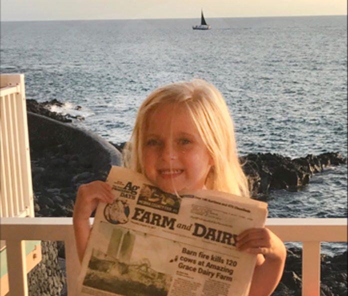 Avery Jane Mattarochia always brings the Farm and Dairy when she travels. She was visiting Kauai, Hawaii, with her parents, Anthony and Rebecca, sister, Emily, and grandparents, Bob and Jane.