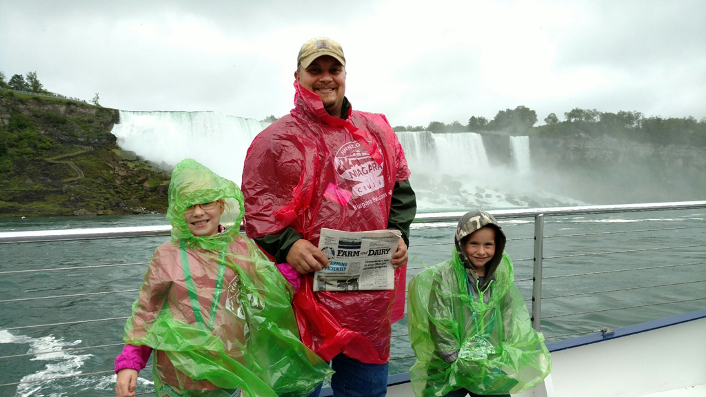 Hello from Niagara Falls, Canada. The Harris family — Emily, Tom, Levi and Lori (not pictured) of Cambridge, Ohio — took us to see the American Falls and the Bridal Veil Falls aboard Niagara’s Hornblower Cruise Boat in early June.