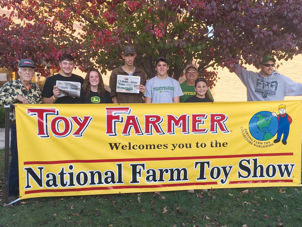 Laurel FFA members from New Castle, Pennsylvania, traveled to Dyersville, Iowa, last November to the National Farm Toy Show, and took Farm and Dairy along. Pictured (L-R) are: Wayne Cooper, Jake Petronelis, Grace Enscoe, Dylan Boak, David Morrison, Dough Magill, Katelynn Bennett, and Laurel FFA Adviser Randy Harrold. While there, students toured the National Farm Toy Museum, the Field of Dreams movie site, ERTL, Die-Cast Models, and the farm toy show itself. Members brought back useful information to incorporate into their own show, which was held April 1.
