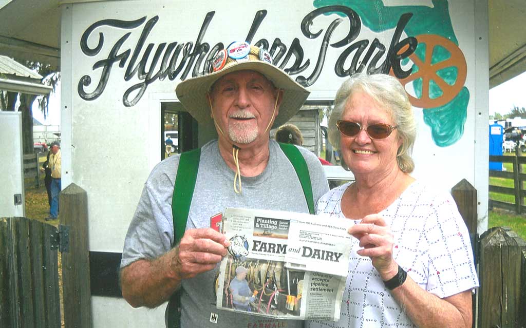 Bob Rankin and Peggy Harper of Ravenna, Ohio, enjoyed their Farm and Dairy while traveling to Florida. They attended a Fly Wheelers show in Avon Park. Bob and Peggy are members of the Historical Engine Society in Burton, Ohio. (Submitted photo)