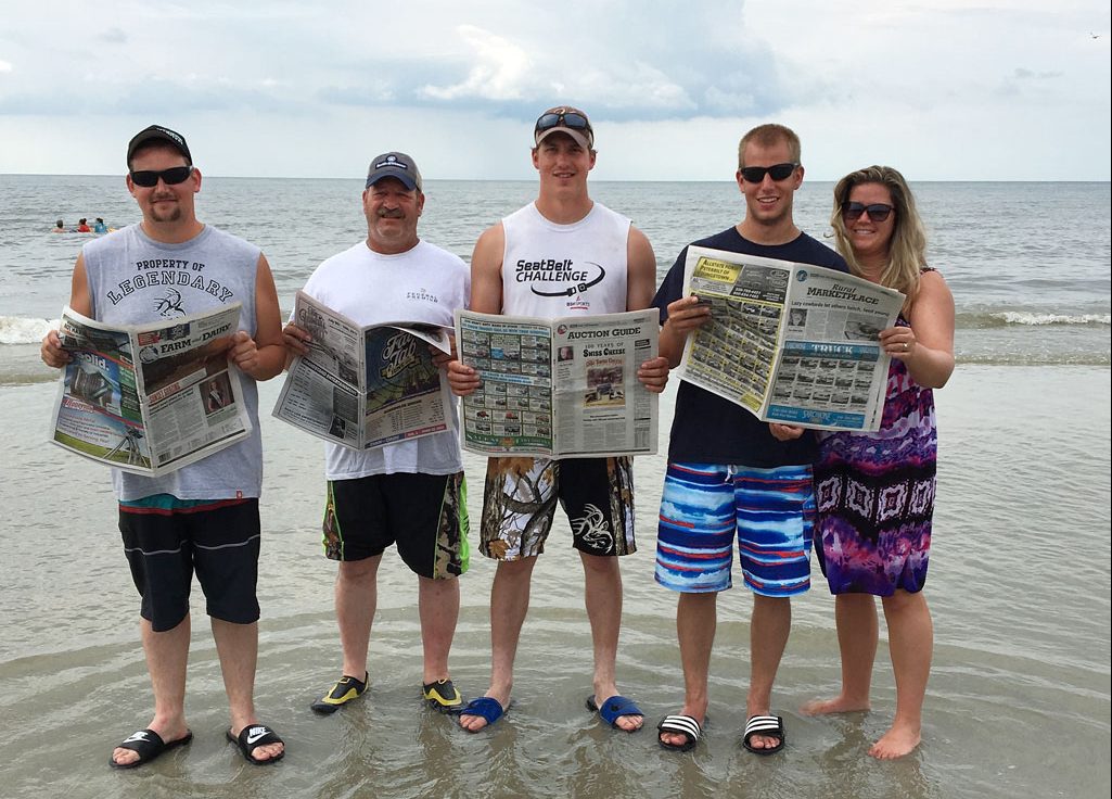 The Jeff Dawson family, dairy farmers from Louisville, Ohio, took their Farm and Dairy with them on a family trip to Hilton Head Island, South Carolina, in June. Pictured are (left to right): Jacob, Jeff, Jonah, Jarrod and Alyssa Dawson.
