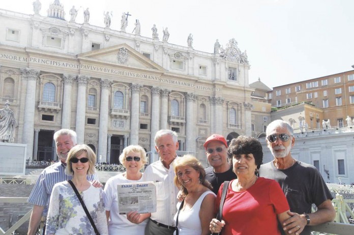 John and Faye Wright, of Moundsville, W.Va., celebrated their 50th anniversary with a trip to Europe. They brought the Farm and Dairy along with them when they visited the Vatican May 29.