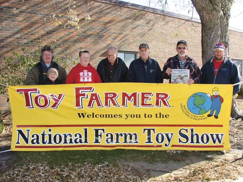 The Farm and Dairy newspaper made its way to the 2014 National Farm Toy Show in Dyersville, Iowa. The newspaper is being held by Jay Graham at the show. From left in the picture is Danny Hixon, Logan Stoops, Tiler Stoops, Charlie Baird, Wayne Cooper, Jay Graham and Vernon Stoops.