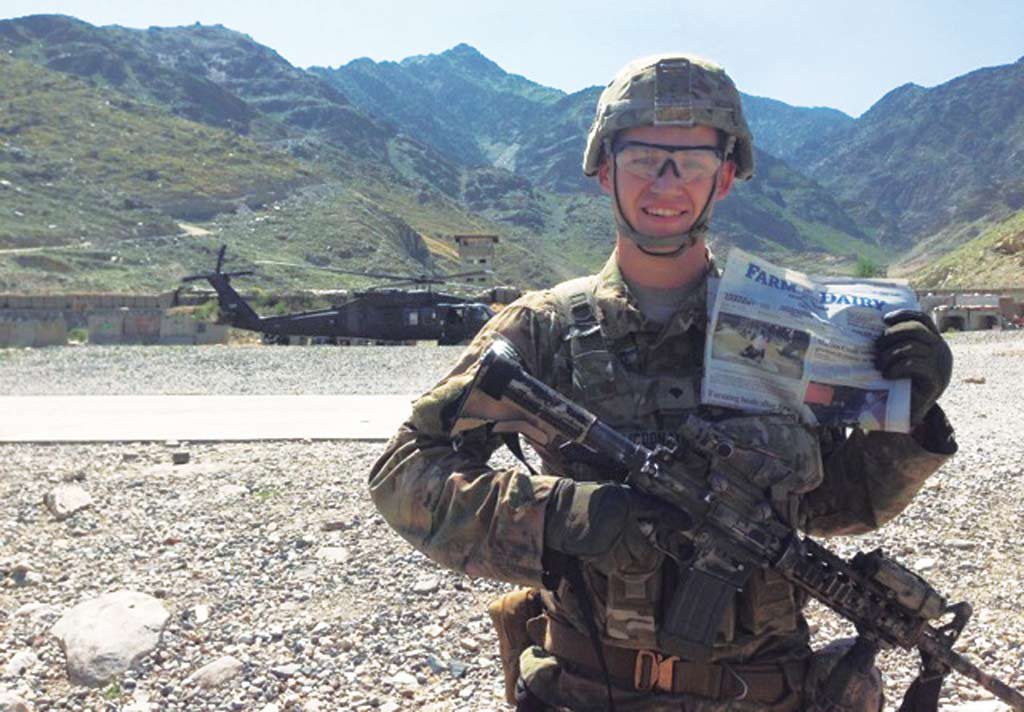 Shawn McDonald, from Mogadore, Ohio, reads his Farm and Dairy while serving with the 101st Airborne F-CO Pathfinders and stationed in Jalalabad, Afghanistan. Shawn’s father, Frank, is an avid reader of Farm and Dairy and Shawn is looking forward to coming home soon to join his dad hunting for antique weapons and military collectibles in the auction section! Thank you for your service to our country, Shawn!