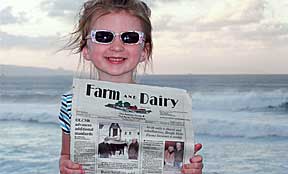 Neil and Margaret Baker, along with daughter, Elizabeth, of Lisbon, Ohio, visited Hookipa Beach in Maui, Hawaii, recently. Elizabeth, 5, is pictured with Farm and Dairy.